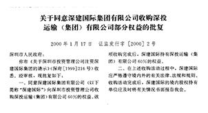 2000年9月收购“深圳市高速公路开发有限公司”19.3%权益。